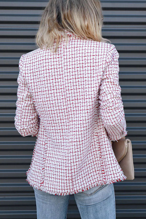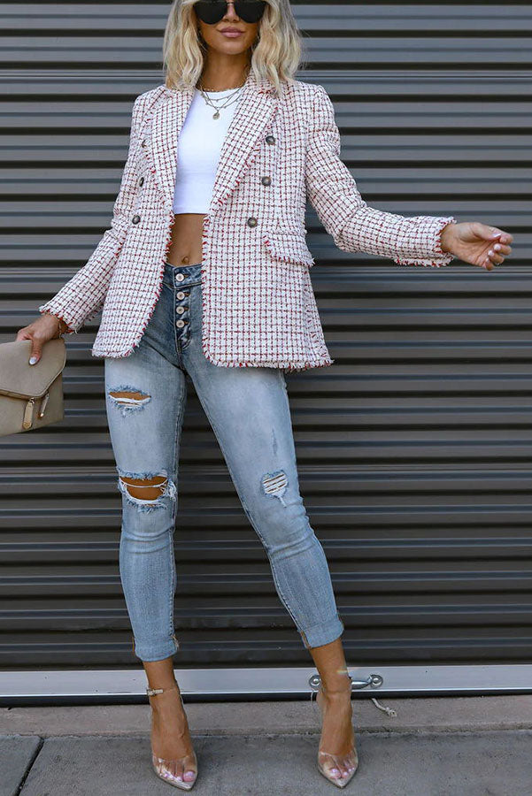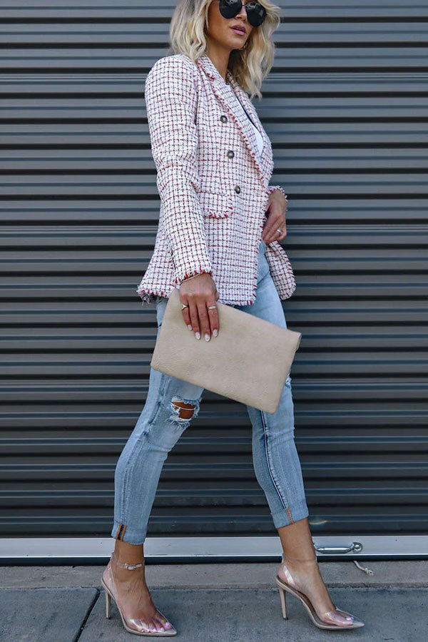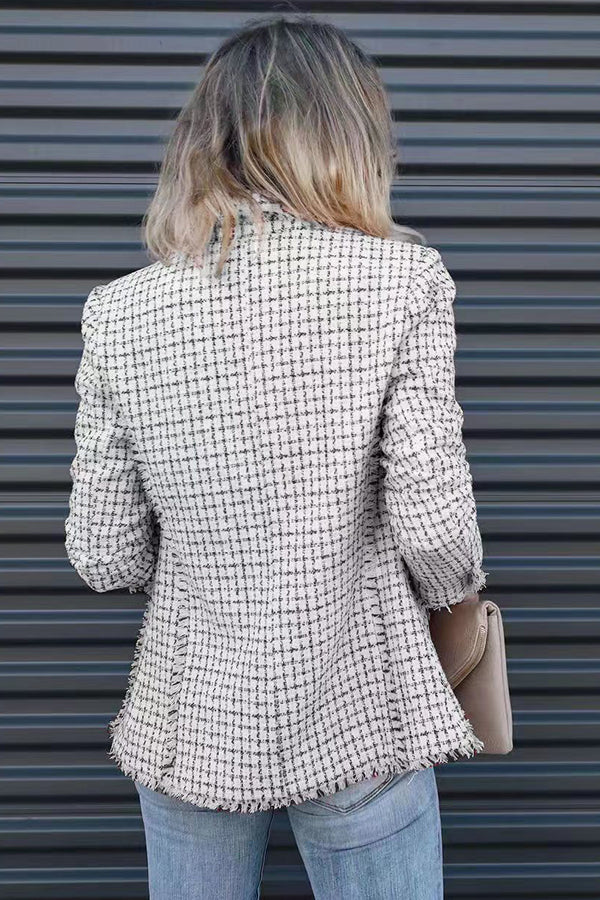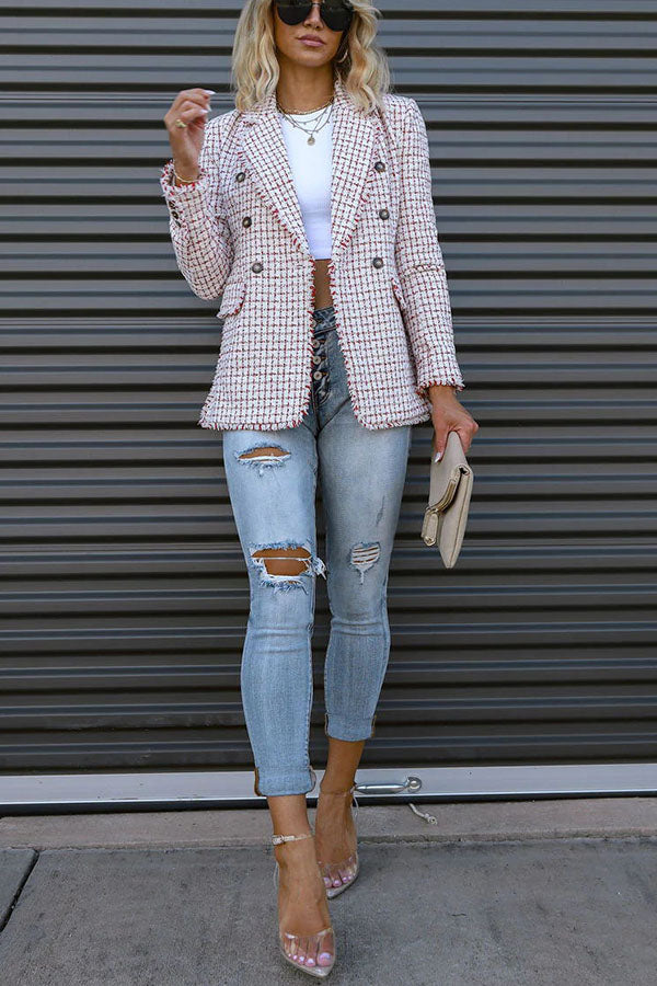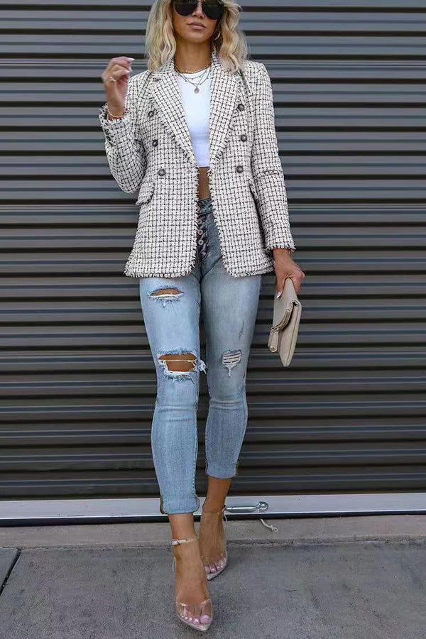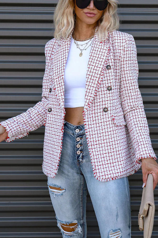 Out In NYC Tweed Plaid Double Breasted Blazer